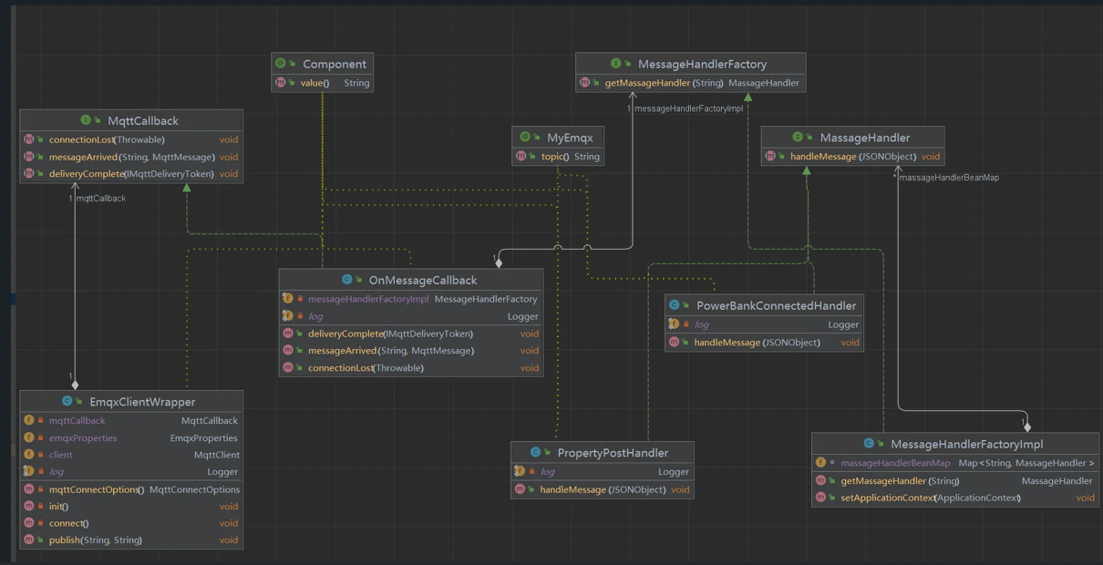 这样真是灾难, so 这里我们引入一个设计模式,借用工厂来创建好对象,然后MqttCallback实现类中去工厂类里面去拿对象,MqttCallback实现类中无需自行注入对象
